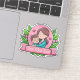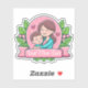 Adorable stickers ideal for Mother's Day. A cute illustration of a mother and her child giving each other a loving hug. Both are wearing a blue shirt and have brown hair. Both have a loving smile and rosy cheeks. They are set inside a pink circle with sparkles and two love hearts dotted around. Below them is a pink banner with an elegant script reading 'Best Mum Ever', this is a template that can be used as it is or replace the original text with your own to personalise. Surrounding the circle and banner are green leaves and pink flowers. A pretty drawing ideal for your mum.