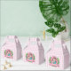 Adorable favour box ideal for Mother's Day. A cute illustration of a mother and her child giving each other a loving hug. Both are wearing a blue shirt and have brown hair. Both have a loving smile and rosy cheeks. They are set inside a pink circle with sparkles and two love hearts dotted around. Below them is a pink banner with an elegant script reading 'Best Mum Ever', this is a template that can be used as it is or replace the original text with your own to personalise. Surrounding the circle and banner are green leaves and pink flowers. A pretty drawing ideal for your mum. The background is a pink and white gingham.