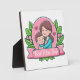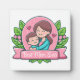 Adorable plaque ideal for Mother's Day. A cute illustration of a mother and her child giving each other a loving hug. Both are wearing a blue shirt and have brown hair. Both have a loving smile and rosy cheeks. They are set inside a pink circle with sparkles and two love hearts dotted around. Below them is a pink banner with an elegant script reading 'Best Mum Ever', this is a template that can be used as it is or replace the original text with your own to personalise. Surrounding the circle and banner are green leaves and pink flowers. A pretty drawing ideal for your mum.