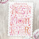 Hand lettered watercolor Best Mum Ever floral design in pink. Change or remove the name to personalise. Original art by Nic Squirrell. Blank on the reverse for your handwritten message.