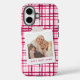 Best Mum Ever Photo Cute Modern Red Pink Pattern iPhone 16 Phone Case features your favourite photo with the text "best mum ever" in modern red script on a pink, red and white plaid background. Personalise by editing the text in the text box provided and adding your own picture. Perfect gift for mum for birthday, Christmas, Holidays, Mother's Day and more. Designed by ©2023 Evco Studio www.zazzle.com/store/evcostudio