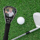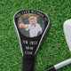 A fun custom black photo golf club head cover for a golfer mum. "This Club Belongs to the Best Mum Ever" is written around a family photo in white typography. You can personalise "Best Mum Ever" to something similar in length ("Best Mummy Ever").