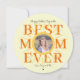 Yellow sun with sunshine Happy Mother's Day custom photo personalised Best Mum Ever greeting card with trendy bright orange bold typography and a handwriting style calligraphy script text and signature.