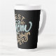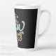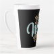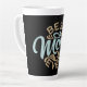Pretty latte mug design that's perfect for Mother's Day features "Best Mum Ever" word art in tan and pastel blue, on black background.