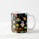 A colourful outer space mug with astronauts, rockets, aliens, stars, ufos and planets all on a black milky-way photographic background. Ideal as a mothers day or birthday gift . Add your own message at the bottom which currently reads - "To the best Mum in the whole universe"