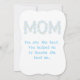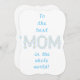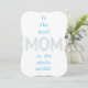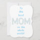 The word MOM is written in white daisy flowers with yellow orange centres, on an outline of blue. The whole message on the front says, To the best MOM in the whole world. One the back says, Mum you are the best. You helped me to become the best me. The text is written in blue script letters and can be customised. Beautiful choice for Mother's Day. Thank you for shopping at CherylsArt on Zazzle.