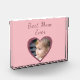 Design your own shelf sitter or desk ornament acrylic photo block with this pretty pink photo template with space to add a custom photo. Upload your favourite pictures and customise the name with your personalisation. A great gift for Mum on Mother's Day or a birthday when you add your own photo of the kids. Features a soft pink cover with glitter heart backgrounds on the heart photo templates.