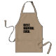 Cute, heavy duty apron with wide front pocket. Light to wear and easy slip on and off. Shorter length perfect for my 5 ft frame. I love it! Wording and print looks good with clear borders. Stitching is good, nicely finished.