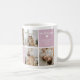 Create a custom photo coffee mug for Mummy featuring 7 pictures of your choice displayed in a square grid template layout, three coloured cubed areas for you to add your own text. The first cube reads 'Happy Mother's Day'. The second cube reads 'Best Mummy Ever' in a combinaton of script and trendy typography and a cute little white heart. The third box reads 'We Love You', name/s and year. Cubes can be changed to any colour by clicking on the customise further option. Simply personalise by adding celebration, message, name/s and year to make an extra special keepsake gift. Perfect for birthdays, Mother's day or any other special occasion!