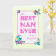 A pretty Mother's Day card for the BEST NAN EVER. The design has a yellow check gingham border surrounding the words, 'To the BEST NAN EVER From Both of Us, in magenta pink lettering on a lightly textured white background. There are bright clusters of multi-coloured flowers in the corners and a small magenta pink heart. The inside message can be customised or deleted if you wish.