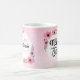 Let your Nana know how special she is with this unique brush script typography design featuring the message, "To the Best Nana in the World." Design is accented with beautiful pink watercolor flowers on blurred pink background. Type has pink swash and additional flower accent. Back of mug has additional flowers with placeholder for your Nana's name. Accents can be adjusted to fit our needs..