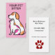 Cute Pet Sitter theme business cards in a trendy colourful and stylish vertical calling card design you can customise online with trendy graphic of a dog and cat.
