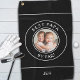 Creating your own golf towel is easy with our user-friendly template. All you need to do is upload your best photo and enter your initials, name, or any text you want. You can also customise the colours of the text and the background to match your papa's style. The photo and the text are printed in white with two circular white borders, creating a striking contrast with the classic black background.