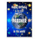 Celebrate your partner with a cosmic twist! This card features a breathtaking view of Earth from space, with the heartfelt message, "Happy Birthday for the best partner in the world." A perfect way to show how much he means to you—no matter the distance, he’s always your number one.