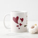 Are you looking for a special gift item for your sister? This mug features a design of bright red painted hearts along with a gold arrow that supports the words "Sisters are Forever Friends". The collection of multi-sized hearts appear on either side of the morning coffee or tea mug and the arrow with text is featured in the centre. Both the text and the pale tan background colour may be customised to suit your desires.