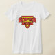 This trendy and fun t-shirt design for mothers features a red and yellow superhero logo with bold font that says, "Super Mum".