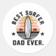 A gift for your surfer dad with this retro sunset design of a vintage surfboard in a tropical minimalist scene that says, "Best Surfer Dad Ever"