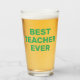 A beer pint glass with the words Best Teacher Ever in large, bold letters.