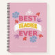 Best teacher ever pink modern name typography floral notebook journal for teachers appreciation, teachers gift, end of school, back to school, event at school, teachers birthday. Personalised teachers notebook with name, firstname. Cute floral lettering notebook for your best teacher ever