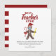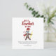 Give a thank you to a special teacher with this Best Teacher Ever Personalised Christmas Holiday Card. This fun modern design has a gingerbread man wearing a face mask on the centre of white background. He is holding a candy cane and a yellow pencil. The greeting is "Best Teacher Ever" in red trendy hand lettering script mixed with simple lettering on front of card. Customised with year on the gingerbread man's mask. Simple customisable greeting below the image followed by signature name. The back of card is designed with red and white horizontal stripes. Click the personalise template option and follow the prompts.