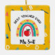 This ornament is a delightful tribute to education and teachers. Its yellow background exudes warmth and positivity, while the playful arrangement of paperclips and school supplies, coupled with the teacher-inspired rainbow, captures the essence of learning, creativity, and inspiration. It's a fitting ornament for any educator or student, symbolising the joy of knowledge and the important role teachers play in shaping young minds.