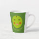 This awesome latte mug features a bright green apple with a big wide smile and rosy red cheeks.
