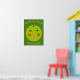 This poster features a bright green apple with a big wide smile and rosy red cheeks.