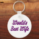 Key chain with World's best wife in 3D purple text. Round and square key chains available in several sizes.