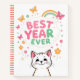 Joyful & Uplifting! This notebook design radiates positivity with its 'Best Year Ever' message, surrounded by charming butterflies, delicate flowers, and a playful, happy cat.