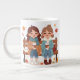 Diese liebevoll gestaltete Tasse zeigt zwei fröhliche Freundinnen auf einer Bank – gemeinsam lachen, quatschen und Kaffee trinken unter herbstlichen Blättern.