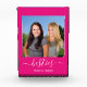 This cute, trendy best friends design features a hot pink fuchsia magenta background and a white-framed square photo that you can replace with your own. The white text, "Besties" with a small heart for the dot over the letter i, appears below the photo in popular, elegant script typography with a cool, classy hand-lettered look. Below the script text is a customisable text line in easy-to-read popular sans serif typography, where you can add names and/or other appropriate text.