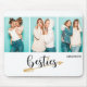 This modern design features three of your favourite photos with the text "besties" in fun typography with your personalised names. Personalised by editing the text in the text boxes provided. #photo #photogifts #gifts #gift #giftsforher #girly #bffs #bestfriends #bffgifts #birthdaygifts #holidaygifts #personalizedgifts #personalised #mousepads #computer #laptop #electronics