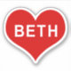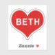 BETH NAME Red Love Heart Vinyl Sticker