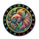 Turn your game room or man cave into an underwater paradise with the Betta Beauty Dartboard. This design highlights a dazzling betta fish, awash in vivid shades of blue, gold, and magenta, set against a deep black background with glowing, golden bubbles. Perfectly tailored for dartboard enthusiasts who appreciate art and style, this piece blends the thrill of the game with the elegance of marine life.