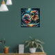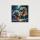 Betta Fish Dance in Deep Blue Ocean Bubbles Poster