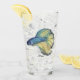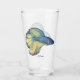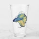 A watercolor of a lovely blue and gold male Betta Splendens fish adorns this glass!