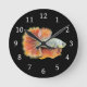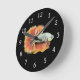 A watercolor painting of a lovely orange red half moon male Betta Splendens fish adorns this clock!
