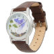 I like the illustrative watch with the lady on it. It is a great reminder that I am blessed and it  has a very sturdy leather band. The colors are true and vibrant. Love the color of the Leather also. Very nice.