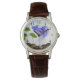 A watercolor painting of a little blue male betta splendens fish adorns this fun watch!