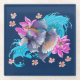 Betta Siamese Fighting Fish Lotus Waves Blue Glass Coaster