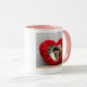 better days ahead Mug. White Mug, Pink Handle, Positive Message, Colourful Design, Motivational Quote. A white mug with a pink handle and interior, featuring a vibrant design with the text “BETTER DAYS AHEAD” in stylised lettering. The background includes shades of blue, pink, and orange, along with an illustration of a sun, conveying a message of optimism and hope.