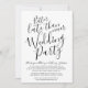 Typographic script modern simple mono black text on white design post-wedding invitation reads better late than never wedding party. Simple modern contemporary design, personalise with your own wedding after-party belated wedding venue, brides and grooms names and reply details on the front and your favourite wedding photo from your wedding day on the reverse. Matching wedding products and other colour options available in the store. © Design by Sarah Trett for www.mylittleedenweddings.com