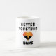 Better together mug with a couple inside a red heart and a customisable text to write the recipient name to give it as a gift to your lover or family.