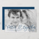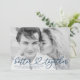 Elegant photo engagement announcements featuring your horizontal photo with the phrase "better together" in a navy script connected by a heart with an optional white gradient (simply delete if not needed). Personalise the front of the announcement by adding your names and additional details such as the wedding website, location, etc. The design is perfect to use as a Valentine's Day-themed engagement announcement!