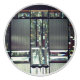 A modern, masculine design featuring birch trees seen through beveled glass on a metallic, silver pinstripe background. Elegant and masculine stained glass look. In colors of silver and black.