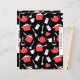 Custom double sided chapter divider page for a black, white and red kitchen utensil cookbook recipe binder. Features a modern, fun whimsical kitchen utensil pattern in a black, white and red colour palette with customisable text presented on a coordinating banner.