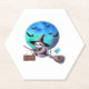 Beware Cute Witch Sloth Flying on Broom Halloween Paper Coaster