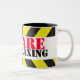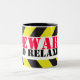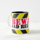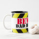 Fun bold construction workers style mug. A perfect fun gift for Dad's who would like a little time to themselves to enjoy a cuppa. Reads Beware Dad relaxing or can be customised with the words of your choice. Design by Sarah Trett.