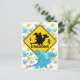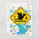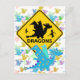 Beware of Dragons Warning Sign Blue Cartoon Dragon Postcard. Cool ice blue cartoon dragon with colour stars, wings and big star tail and yellow black warning traffic sign with colour dragons pattern postcard. This cool and cute cartoon dragon postcard is fully customisable, add your texts and images!
