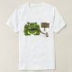Guard Frog chained to a wooden post with 'Beware of Frog' sign.